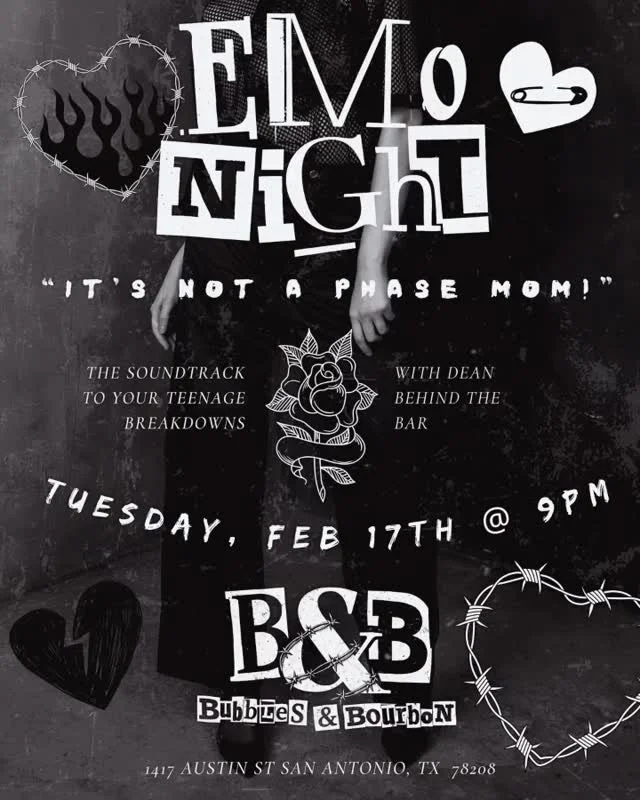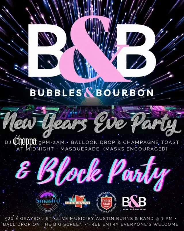 NOW OPEN!!!Monday - Friday 3pm - 2am Saturday & Sunday 12pm - 2am Location β1417 Austin St. San Antonio, TX 78208 Inquiries βContact Us:(210) 265-1420 @BubblesAndBourbonSA